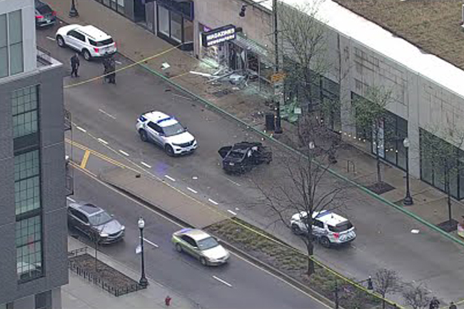 Policja poinformowała wszystko zaczęło się około godziny 4:30 nad ranem, gdy funkcjonariusze zauważyli czarną Kię, której kierowca miał rzekomo przejechać na czerwonym świetle. Dalsze ustalenia wykazały, że pojazd ten został skradziony. Policjanci próbowali zatrzymać samochód, lecz kierowca nie reagował. Podczas ucieczki stracił panowanie nad pojazdem i wjechał w City News Cafe przy 4000 North Cicero Avenue w dzielnicy Portage Park. Po wypadku dwie osoby zostały zatrzymane na miejscu zdarzenia, natomiast dwie inne, znajdujące się w samochodzie, zbiegły pieszo. Wkrótce potem zostały one zatrzymane przez policjantów. W ręce policji trafił 17-latek, a także 22-letni mężczyzna, 23-letnia kobieta oraz 26-letni mężczyzna. Wszystkich zabrano do szpitala w celu udzielenia im pomocy medycznej na skutek niegroźnych obrażeń odniesionych w wypadku. W skradzionym samochodzie Kia policja znalazła także trzy sztuki broni palnej. W sprawie trwa dochodzenie.